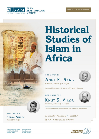 İSAM ilmi toplantılarının on dokuzuncusu Kübra Nugay'ın moderatörlüğünde Bergen Üniversitesi'nden Prof. Dr. Anne K. Bang ve Prof. Dr. Knut S. Vikor'un konuşmacı olduğu bir panelle 9 Ekim 2024 Çarşamba günü gerçekleştirilecektir.